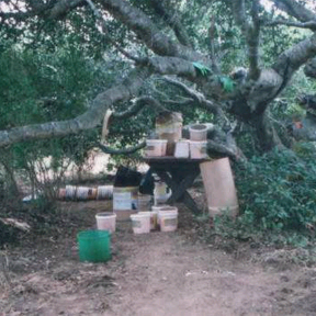 "Mom and pop" meth labs can be run out of a car trunk or less.In remote areas, meth labs are frequently run outdoors.Technicians dig through toxic waste at a meth dump siteIngredients for cooking meth in a home labHazmat-suited enforcement officers dismantle a lab Highly flamable ingredients can explode, claiming an entire dwelling such as this one in Shannon Hills, Ark.A small fire inside this Montana kitchen meth lab was quickly dousedThis Kentucky couple faces thousands of dollars in cleanup costs because a meth lab was run in their property